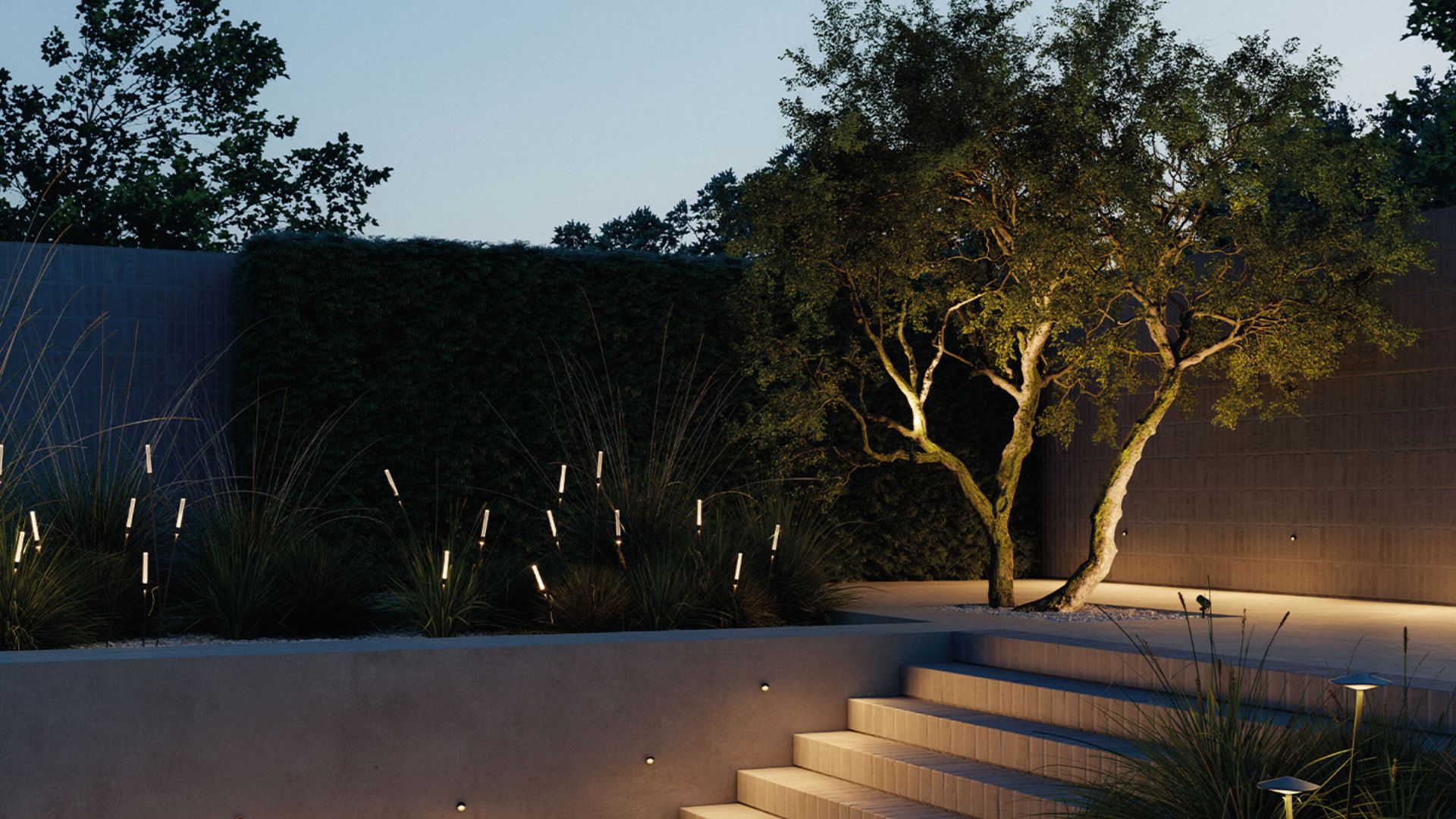 The Lodes design team signs two projects that explore complementary ways of interpreting outdoor light: one blending with nature, the other enhancing architectural surfaces. Reed is a slender metal stem available in three heights and combinable with three organically shaped diffusers. Installed directly in the ground, it blends into vegetation, creating the impression of a natural extension of the landscape. Its discreet yet poetic presence becomes a luminous sign accompanying greenery without overpowering it.